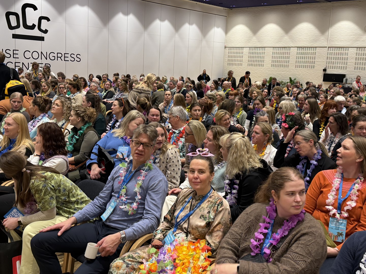 Mens vinterkulden og sneen udenfor mindede alle om årstiden, var stemningen indendørs tropisk varm. Deltagerne var udsmykket med blomsterranker og bastskørter i tråd med dagens Hawaii-tema, og kongressalen var dekoreret i samme stil.